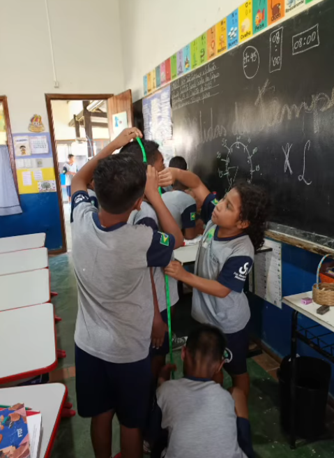 A professora Rosiene Vilalba Rólquis introduziu à turma do 2º ano um novo tema : as medidas! De maneira envolvente , os alunos foram guiados a explorar e comparar tamanhos, pesos, comprimentos e alturas, utilizando diversos instrumentos de medição do cotidiano.