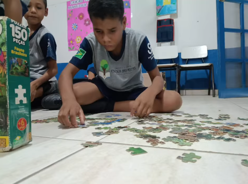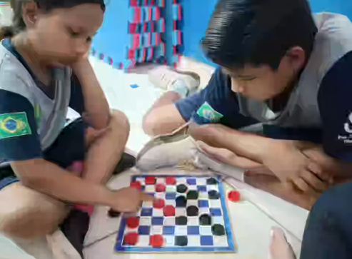 Durante o momento de jogos na biblioteca, os alunos desenvolveram habilidades de concentração, estratégia e trabalho em equipe. Uma forma criativa e divertida de aprender e fortalecer vínculos entre os colegas!