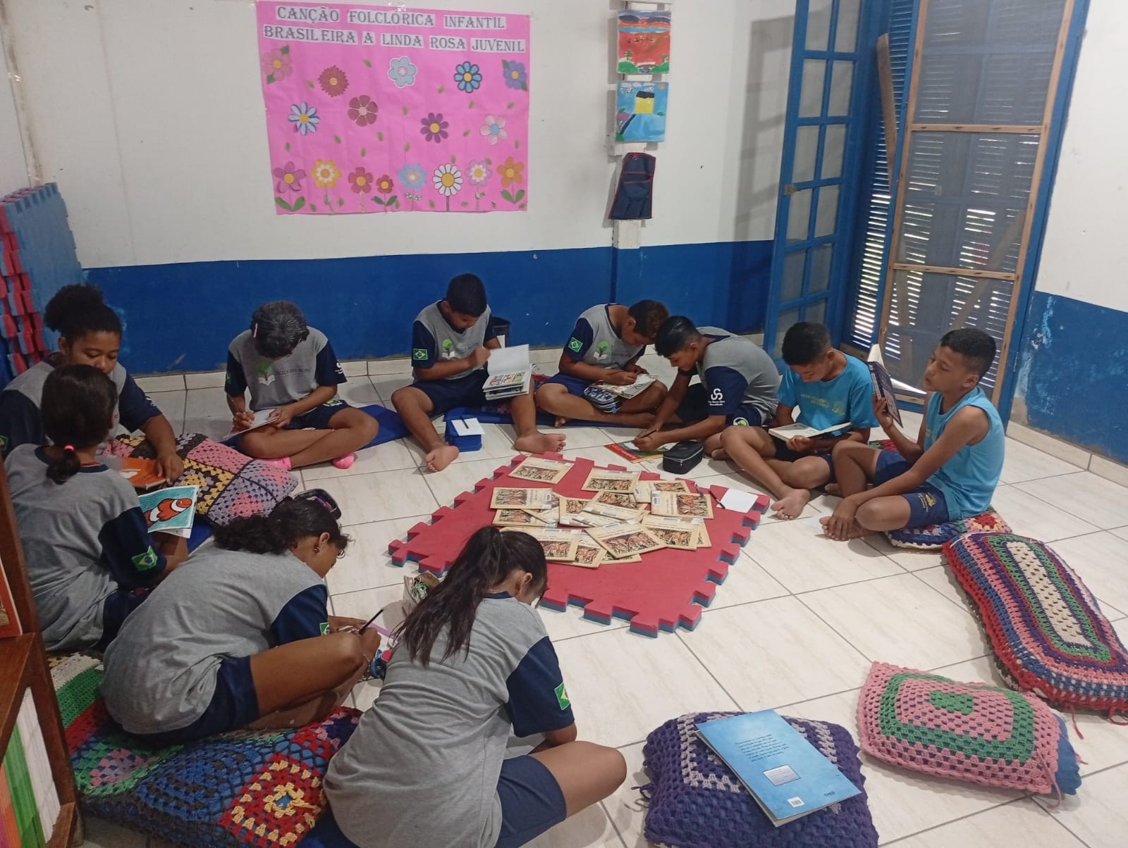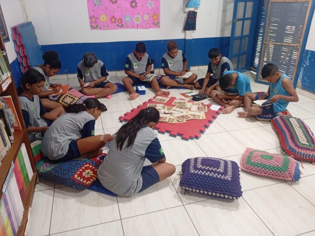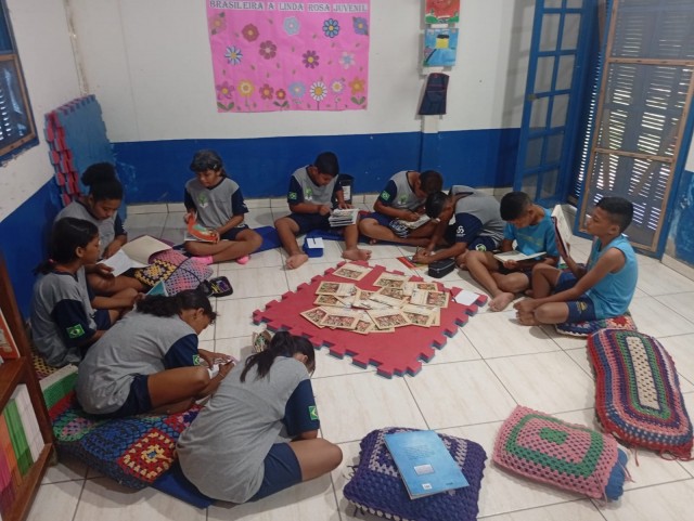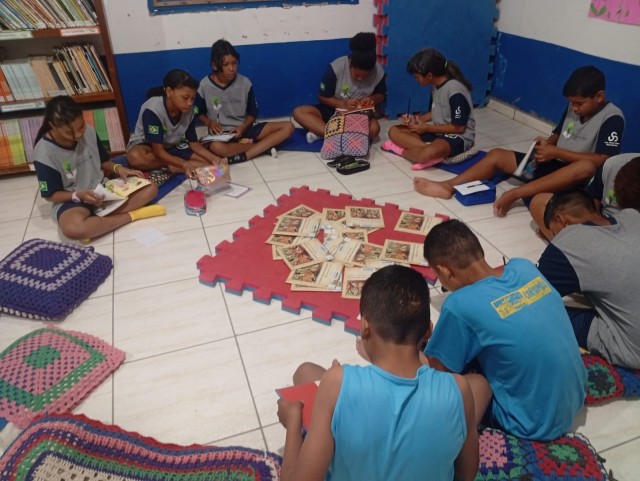 Os alunos do 5º ano, com a professora Lidiane Campos, participaram de um momento de leitura na biblioteca,cada um escolheu um livro.Após a leitura, produziram textos e desenhos sobre as histórias lidas e compartilharam com os colegas suas interpretações e aprendizados.