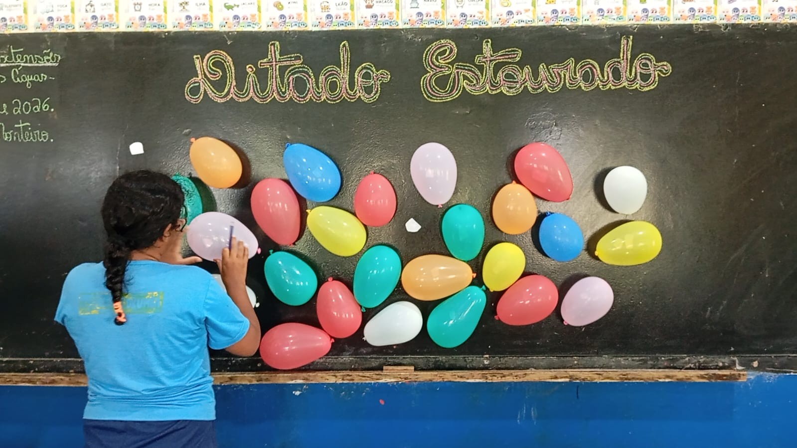 A professora Jacqueline Monteiro realizou com a turma do 4º ano a dinâmica Ditado Estourado, proporcionando um momento de aprendizagem lúdica e interativa.