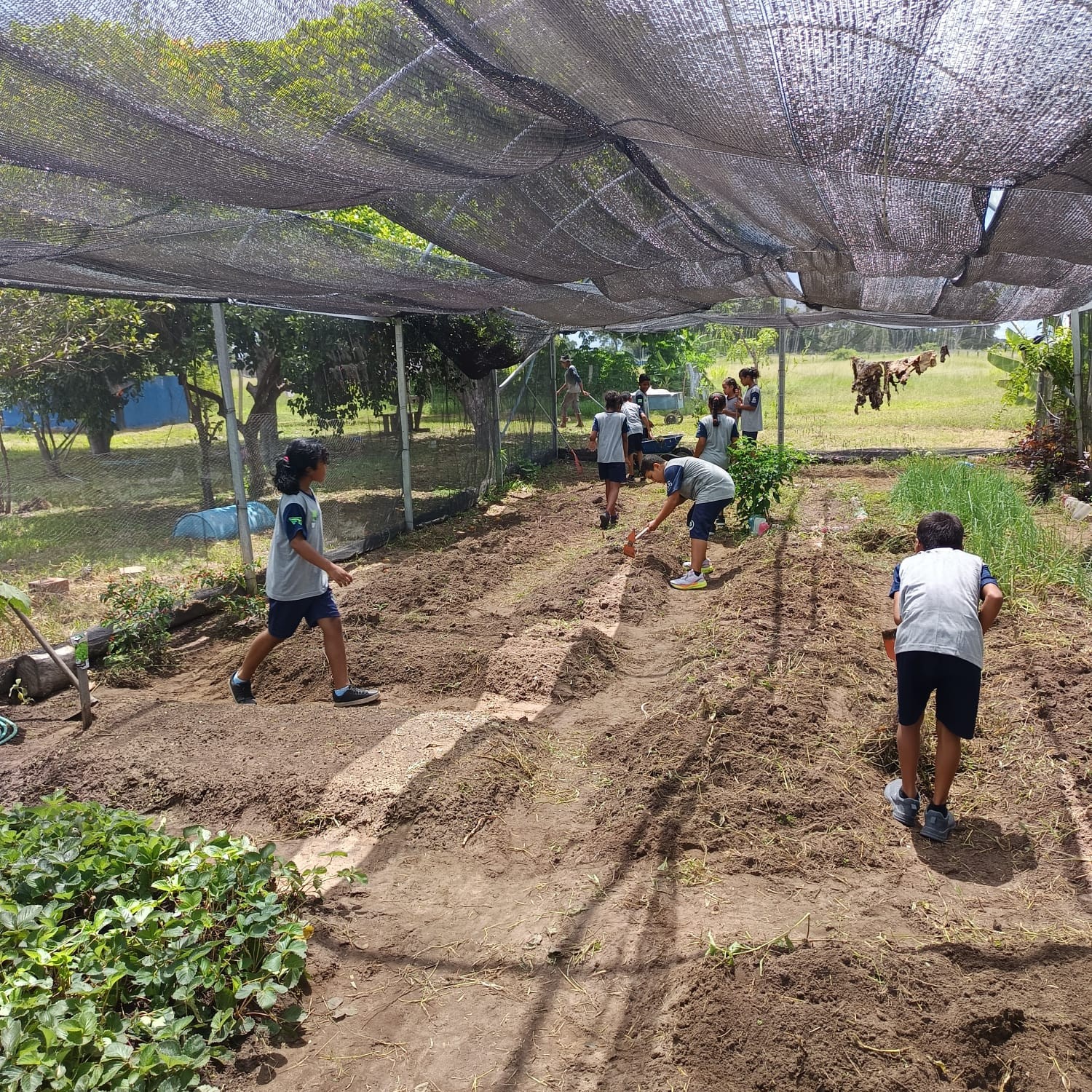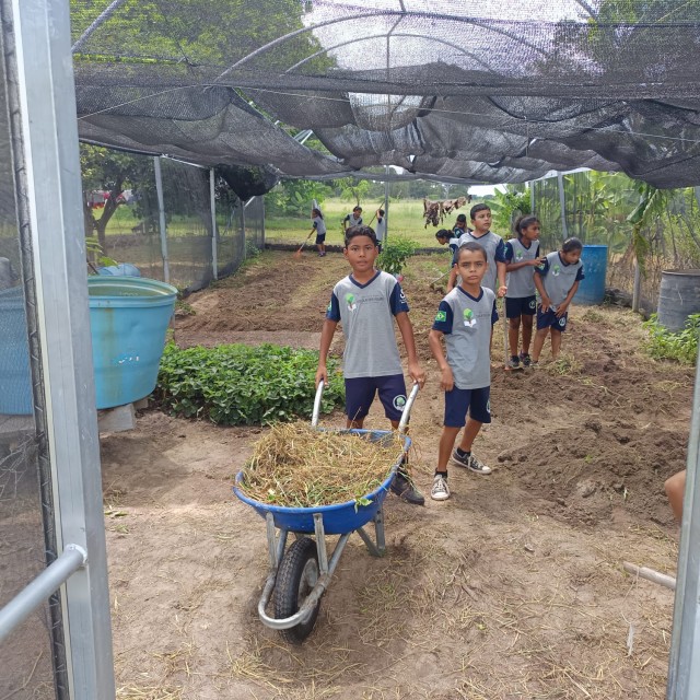 Nossa horta escolar Na primeira semana de aula, as turmas já se empenharam, sob orientação dos professores, nos cuidados com a nossa horta: realizaram a limpeza dos canteiros e a coleta de adubo no entorno da escola.