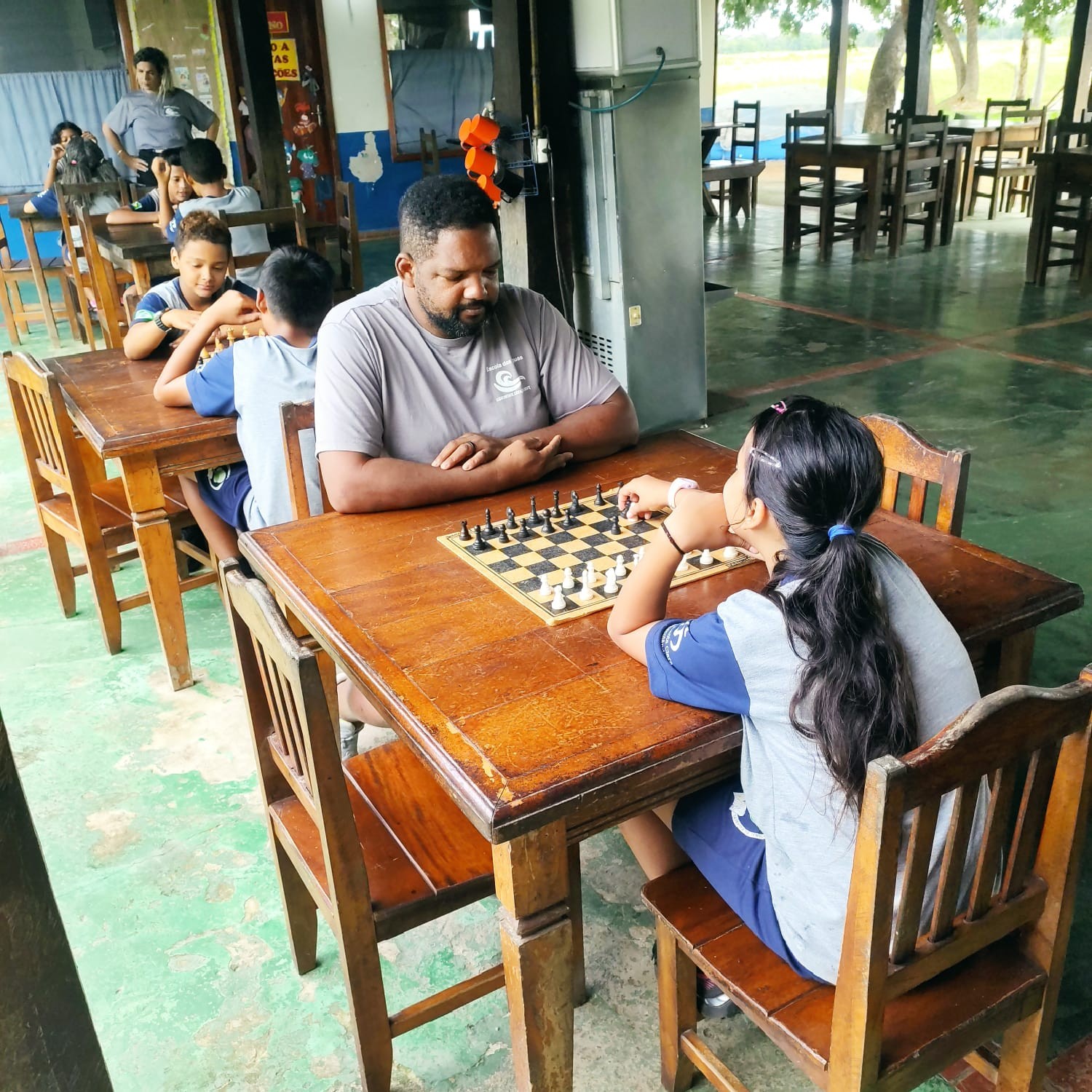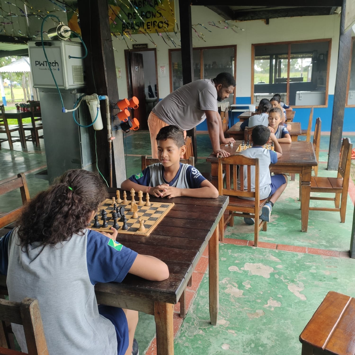O professor Wanderley Catarino utiliza o xadrez como recurso em suas aulas para desenvolver habilidades matemáticas e outras competências, como raciocínio lógico, concentração e tomada de decisões.