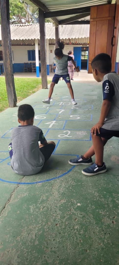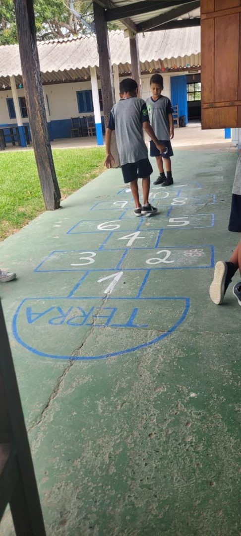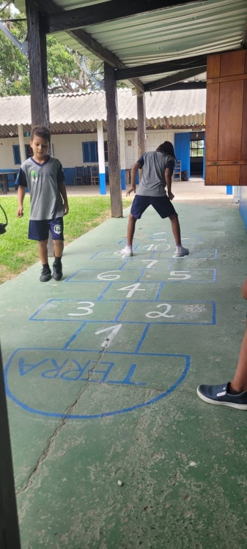 Na aula da professora Evelyn Cristina, os alunos do 3º ano participaram de uma atividade divertida envolvendo jogos e recreação, como amarelinha e brincadeira de boneco. Essas atividades têm o objetivo de estimular a imaginação e a criatividade dos estudantes, além de promover a socialização entre eles.