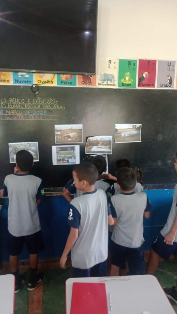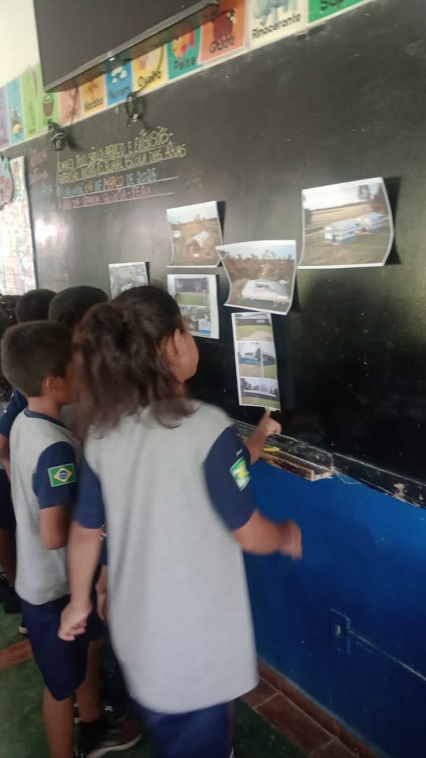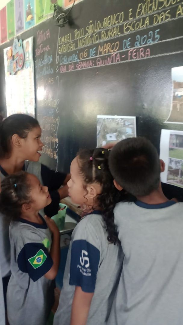 Na aula de geografia, a professora Rosiene Vilalba com a turma do 2ano exploraram o conceito de espaço e lugar no ambiente escolar, analisando fotografias da escola sob diferentes perspectivas. Ao se situarem dentro da escola e nos diversos espaços que a compõem, puderam, em seguida, representá-la de forma criativa.