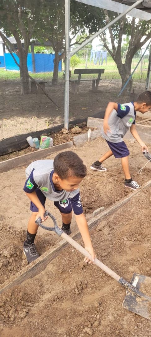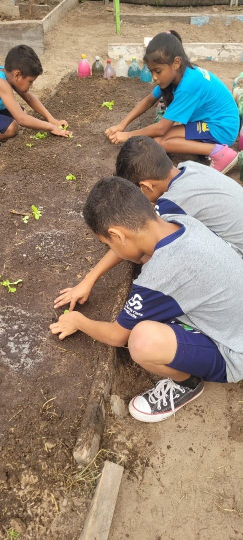 Na aula da professora Evelyn Cristina, os alunos do 3º ano foram conduzidos até a horta para realizar a transferência dos pés de alface, estruturando o canteiro de forma organizada para o plantio das mudas. Em breve, poderemos desfrutar de uma salada fresca e saudável em nossa alimentação.