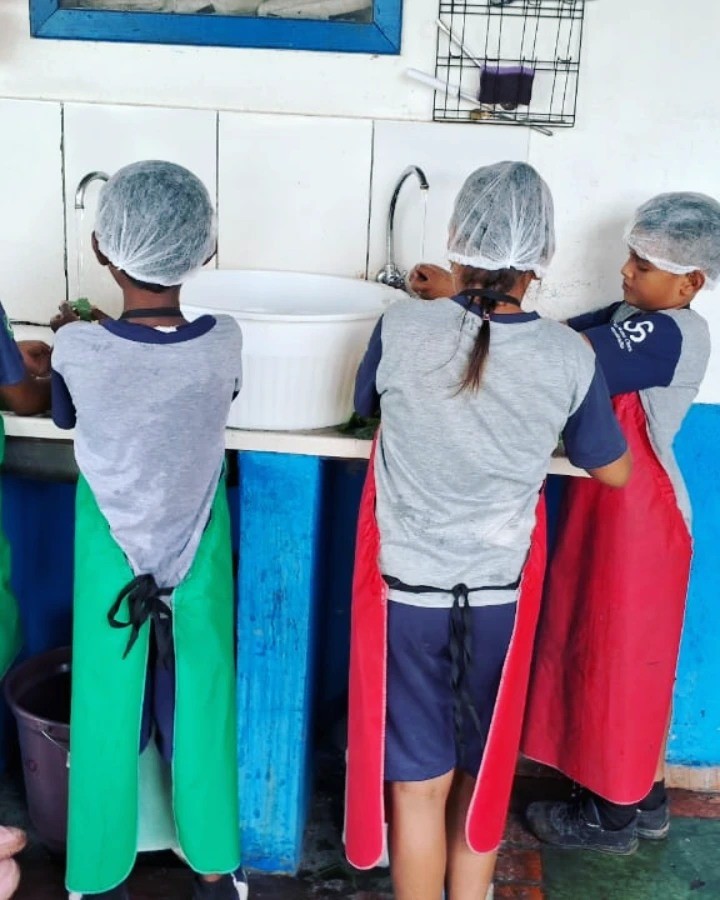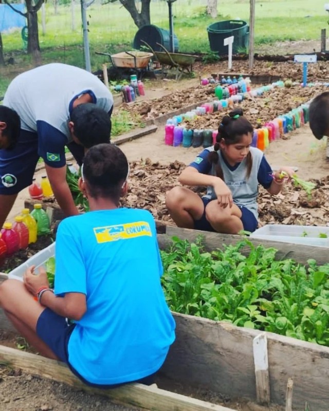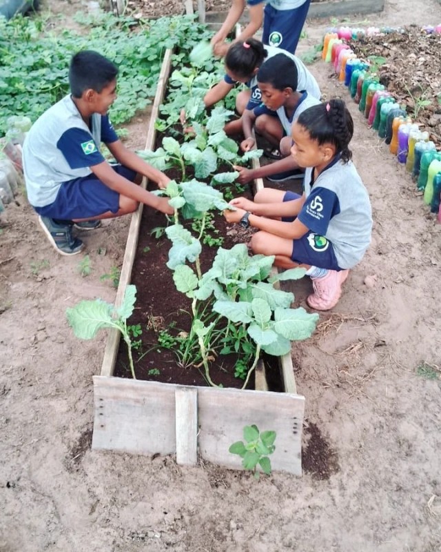 As atividades na horta, promovem diversas aprendizagens.Os alunos fizeram a colheita de rúcula, couve, cenoura e preparam uma deliciosa salada.