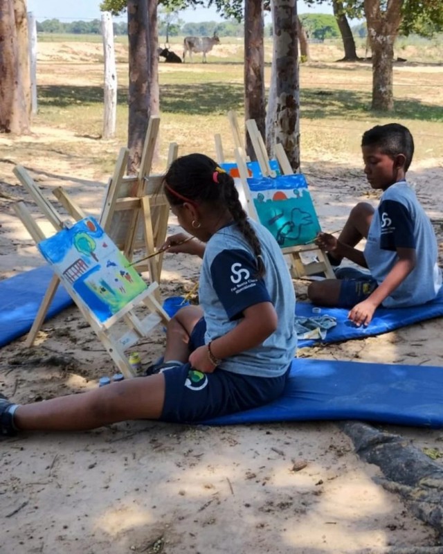 A atividade pintura em tela foi contextualizada com o tema Pantanal, destacando sua biodiversidade e características únicas .Por meio de imagens e vídeos , discutimos as diferentes paisagens, fauna e flora. A proposta não apenas teve o objetivo de desenvolver habilidades artísticas, mas também promover a conscientização sobre a beleza e a importância do Pantanal.