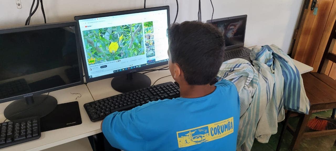 Na aula de Historia, os alunos puderam identificar as espécies de animais em extinção no Brasil, fazendo uma pesquisa na Internet. Com intuito de despertar valores e conscientização de preservação do meio ambiente.