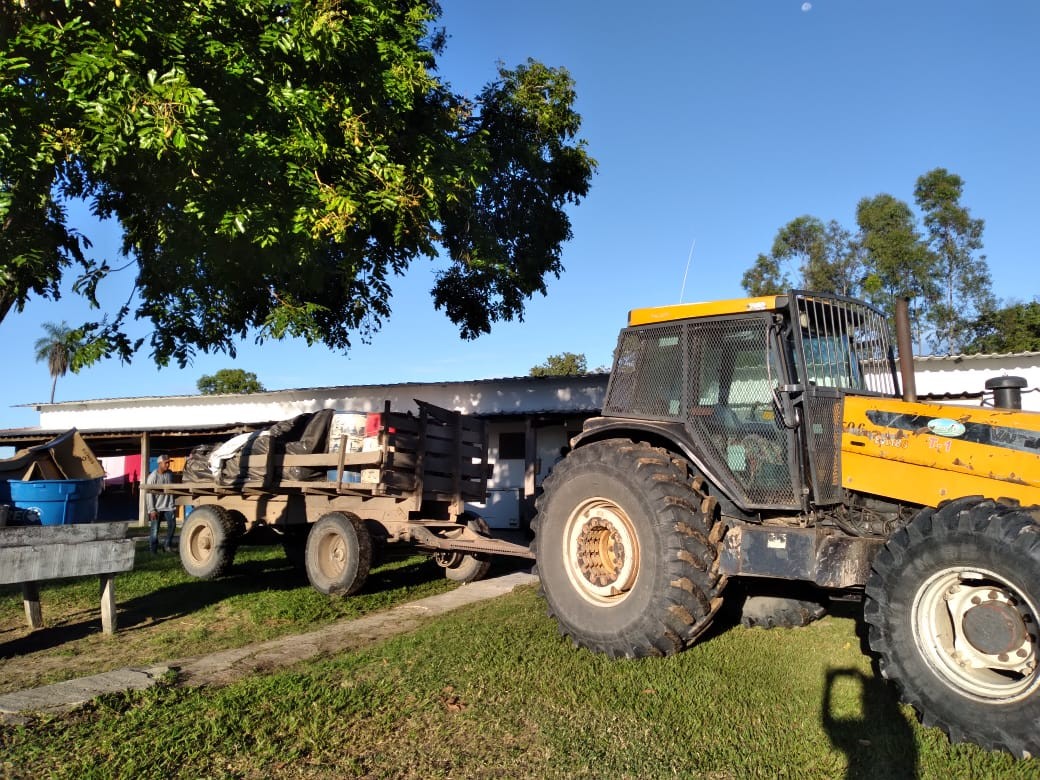 A logística ao acesso para o Instituto Rural Escola das Águas é difícil, utilizamos barco, trator e muito empenho para fazer acontecer.