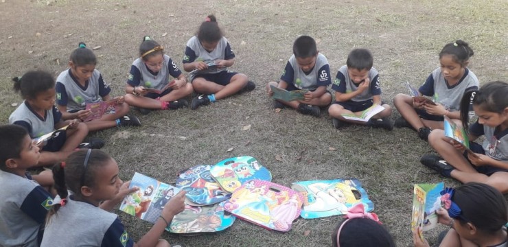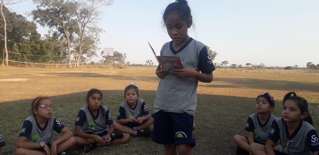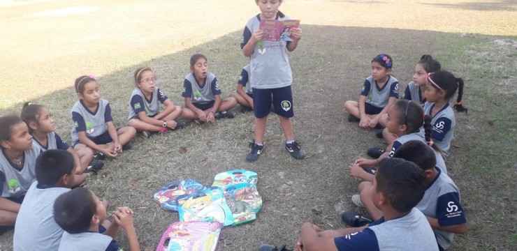 Os alunos da turma do 1°e 2° ano recontaram algumas histórias, como a da Chapeuzinho Vermelho, A Bela e a Fera, Os Dinossauros, O Coelho e a Lebre, A Branca de Neve, entre outros. Em seguida escreveram os seus próprios livros de contos, identificando e descrevendo os personagens. A atividade teve objetivo ampliar o repertório do gênero textual conto de fadas, além de estimular a criatividade e ludicidade.