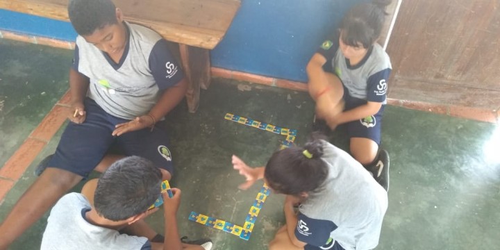 Os estudantes também jogaram o Dominó das Quatro Operações, tendo assim, a oportunidade de treinar e aperfeiçoar seus conhecimentos sobre a tabuada e demais cálculos.