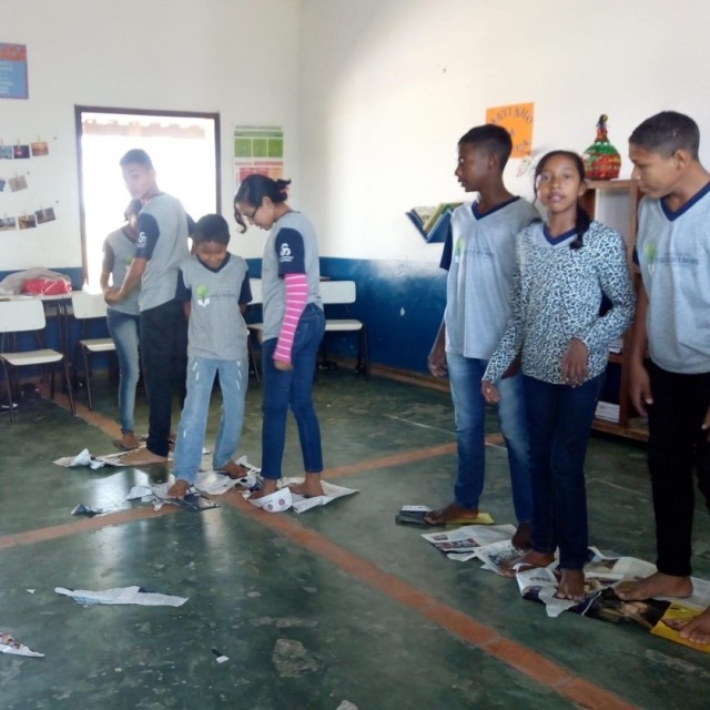 Para trabalhar o valor da UNIÃO, o 5° ano realizou leitura das fábulas do Porco-espinho e Assembleia na carpintaria a fim de comparar elementos presentes na fantasia ao cotidiano. Tiveram como apoio dicionários para busca de verbetes como valor, união, sociedade, entre outros. Ao término da leitura e estudo do texto, os estudantes participaram da dinâmica Ilha do Tesouro na qual, duplas dispostas em cima de jornais (as ilhas), teriam de trabalhar em união para alcançar o tesouro no outro lado da sala sem rasgar o papel e/ou pisar no chão. Mas para conseguir o feito, a turma toda, e não somente as duplas, teria que se unir em busca do propósito.