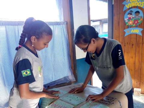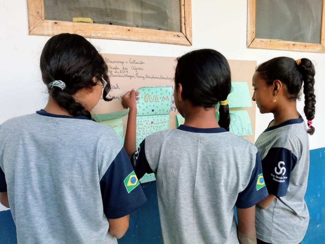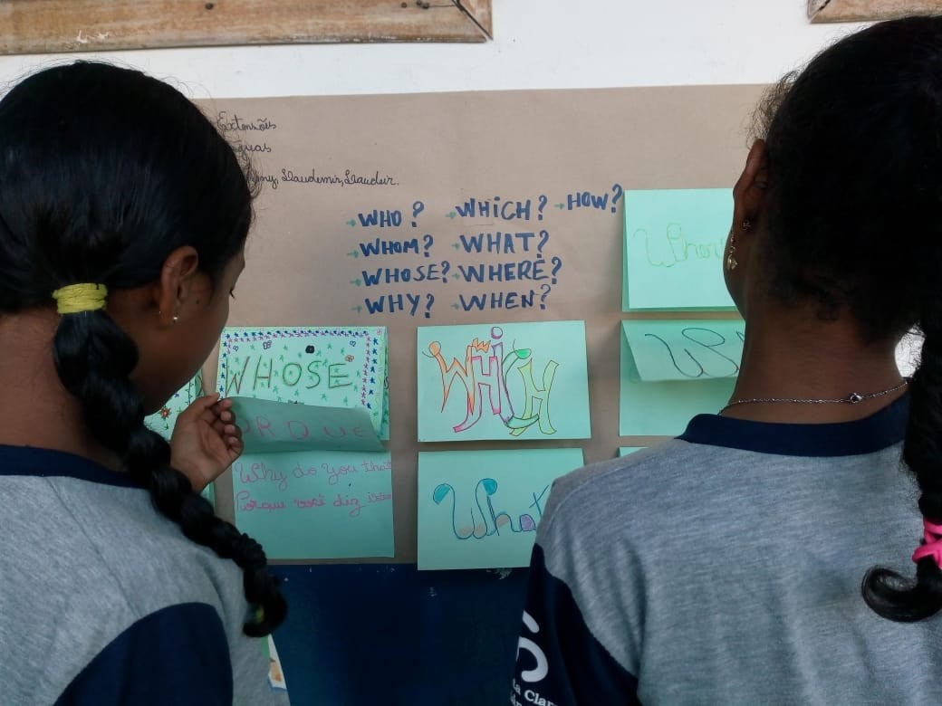 Durante a aula de Inglês, o 5° ano confeccionou um painel informativo contendo Question Words, palavras utilizadas para questionamentos, seus significados, uso adequado e aplicação em frases.