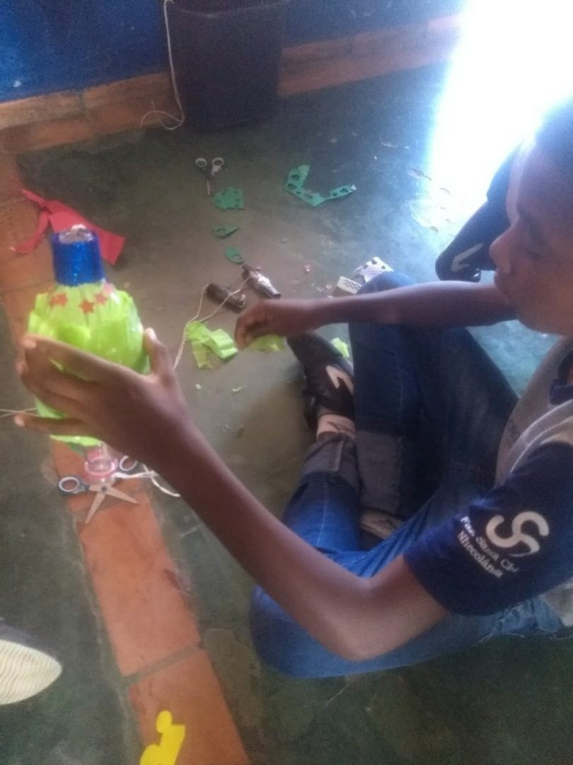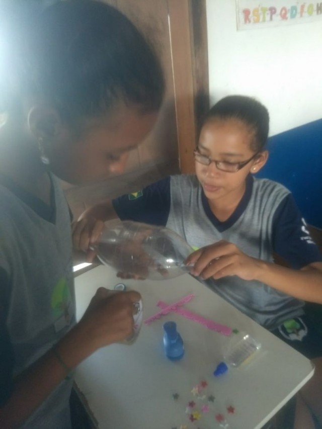Durante a aula de Educação Física os estudante participaram de uma atividade que tem como objetivo resgatar na criança o prazer de brincar com brinquedos. Contudo isso foi importante desenvolver no aluno uma sensibilidade de criar seus próprios brinquedos, trabalhar com o lúdico, fazer com que o aprendizado desta atividade sirva para a vida, obter momentos de lazer e acima de tudo unir o prazer de brincar e se divertir. Pretende-se também iniciar com o aluno a importância da preservação da natureza, reciclando garrafas plásticas e que são os materiais que mais demoram a degenerar no meio ambiente.