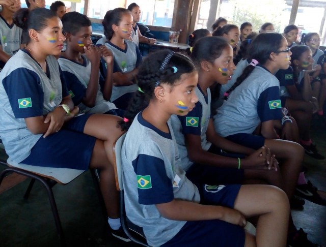 Instituto prestigiando a Copa Mundial Feminina na partida do dia 18/06. Tarde de muita apreensão e emoção, principalmente com o gol de Marta que se tornou a maior artilheira de todas as copas; essa, em especial, é histórica: a primeira transmissão de uma copa feminina. Momento oportuno para demonstrar aos alunos que as meninas também podem sim jogar futebol.