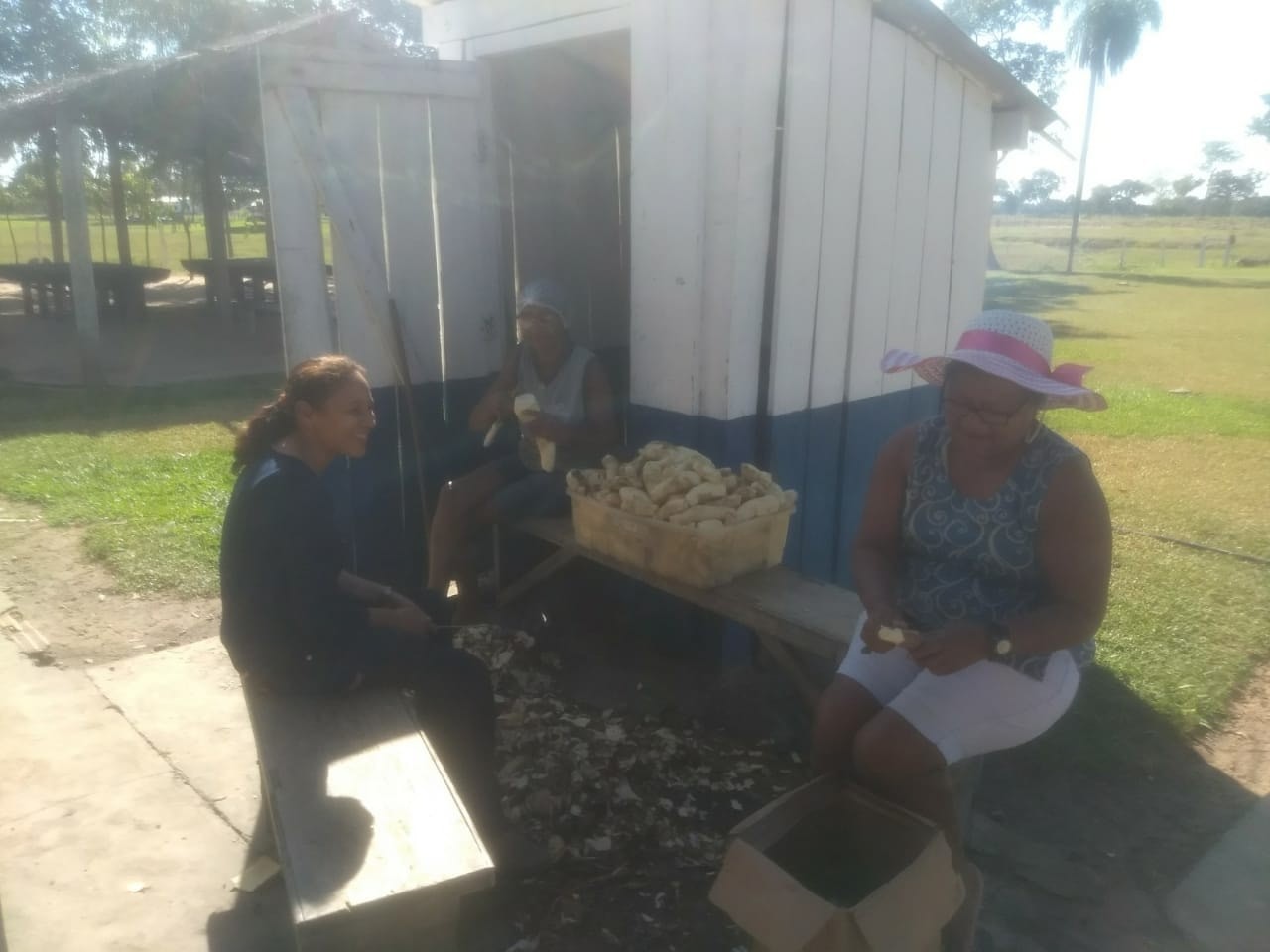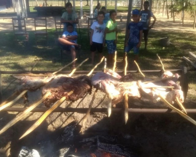 O almoço de domingo é por conta do avô do aluno Anísio, o Sr. Antenor, amigo da escola, que chegou cedo e nos preparou um churrasco bem pantaneiro.