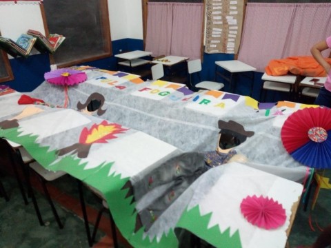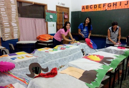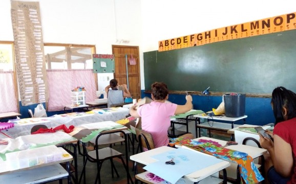 Professoras nos preparativos para o Arraiá o Instituto Rural Escola das Águas.