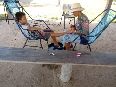 Aos finais de semana nossos estudantes têm um momento reservado para os cuidados pessoais de higiene e beleza. A monitora Rosimeire cuidou dos cabelos e unhas das meninas, bem como a secretária Paula que também realizou corte de cabelo nos meninos.