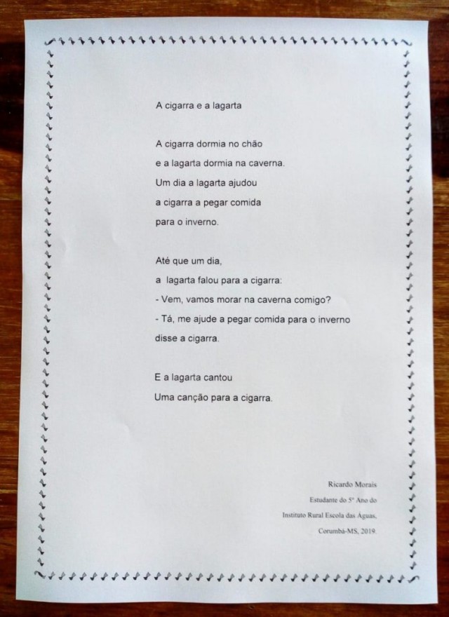 Durante as aulas das disciplinas de Língua Portuguesa e Orientação para o Estudo Pesquisa e Oralidade, os estudantes do 5° Ano adentraram no universo dos poemas, podendo reconhecer a estrutura em versos e estrofes, a presença de rima, ritmo e figuras de linguagem. Dessa maneira, foram orientados a criar suas próprias produções. Além de desenvolver os conhecimentos acerca do gênero textual, a atividade teve como objetivo estimular a leitura e escrita, enriquecimento do vocabulário, criatividade e imaginação.