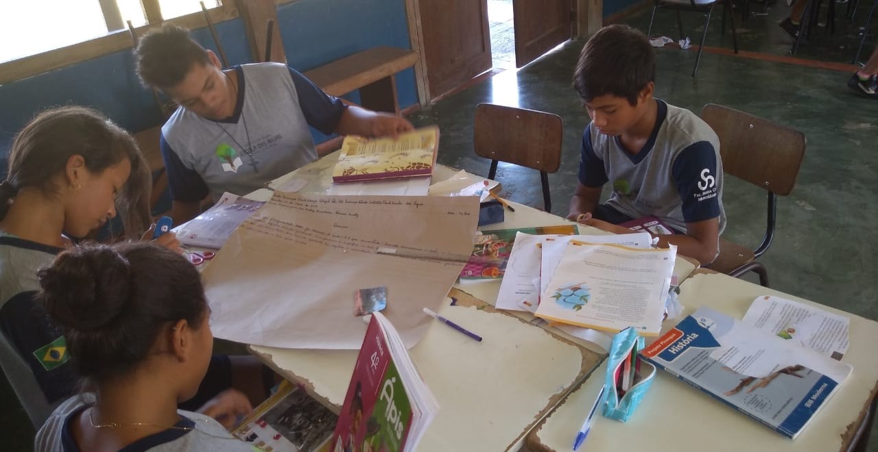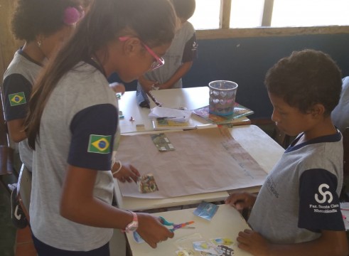 A turma do 4° ano, em grupos, foi orientada a pesquisar em seus livros didáticos de Ciências sobre os tipos de solo e água própria para o consumo. Os educandos confeccionaram cartazes a partir de recortes de revistas, retratando os principais conceitos acerca dos temas.