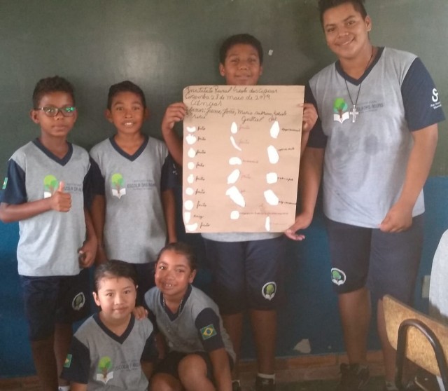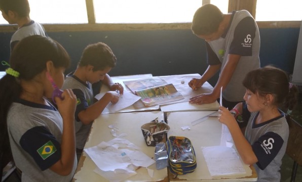 A turma da 3° foi disposta em grupos para aprender sobre os alimentos que comemos e as substâncias químicas na cozinha. Durante a aula de Ciências os estudantes confeccionaram cartazes a partir da pesquisa em livros didáticos e recortes de revistas.