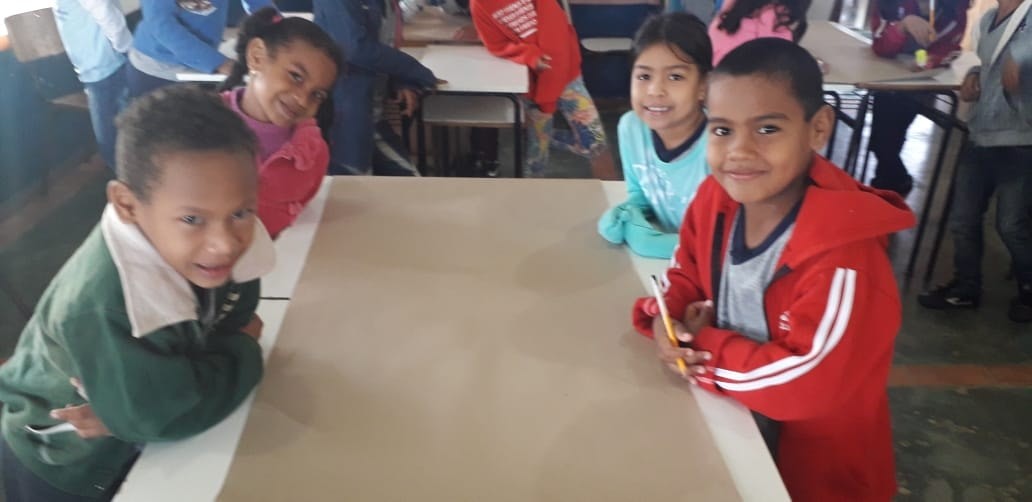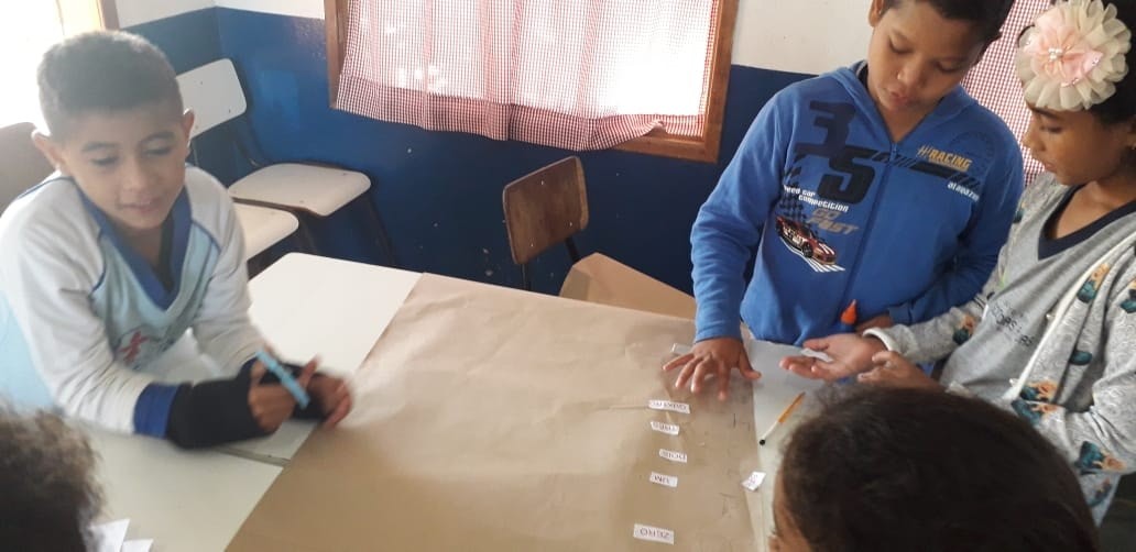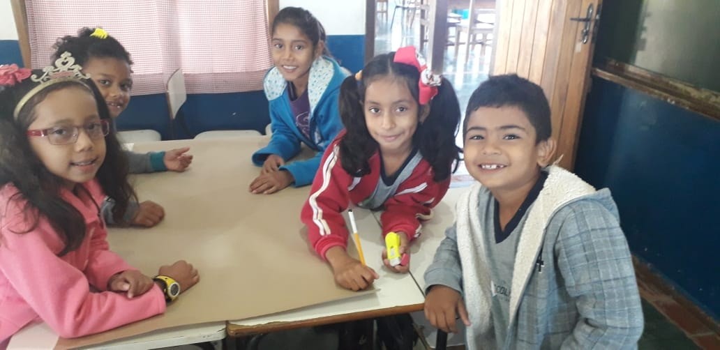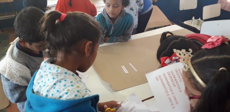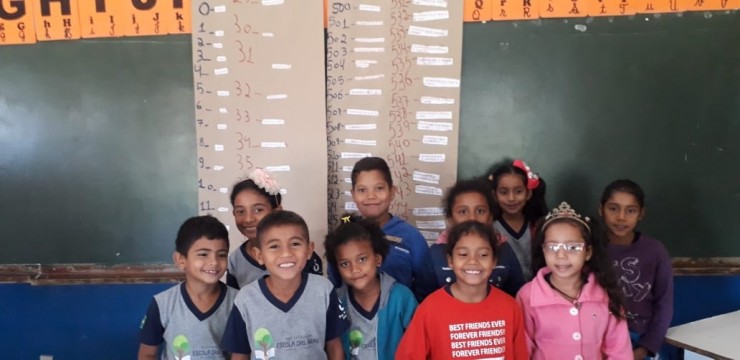 Durante a aula de Matemática, as turmas do 1° e 2° ano montaram painéis numéricos. Dispostos em equipes de trabalho, os estudantes do 1° ano foram orientados a escrever os números de 1 a 100 e os do 2° ano, a escrever de 1 a 1000. A atividade promoveu a interação e cooperação entre os alunos, ao mesmo tempo em que a turma avança no desenvolvimento dos conteúdos.