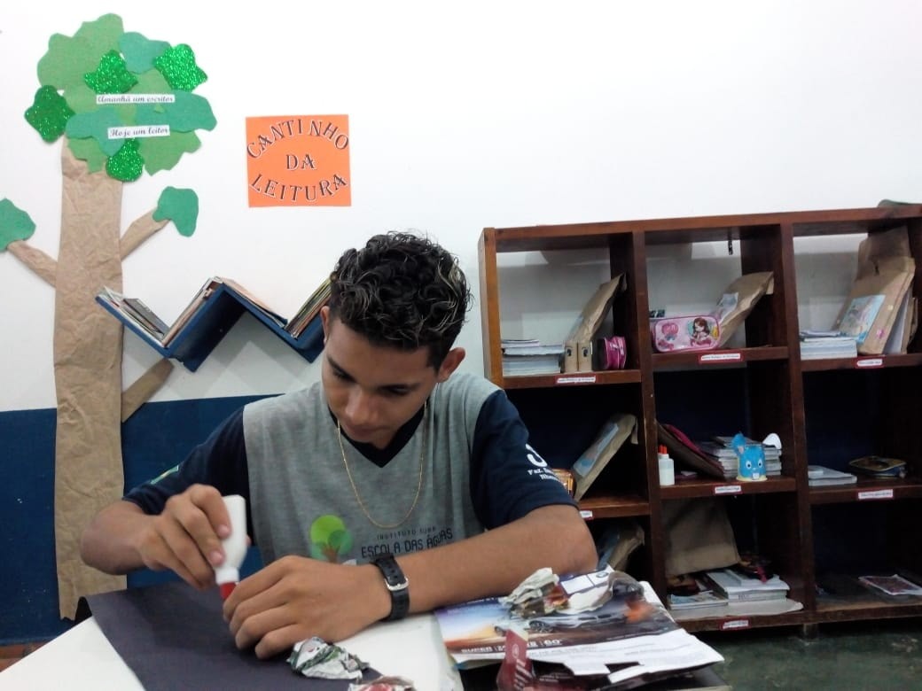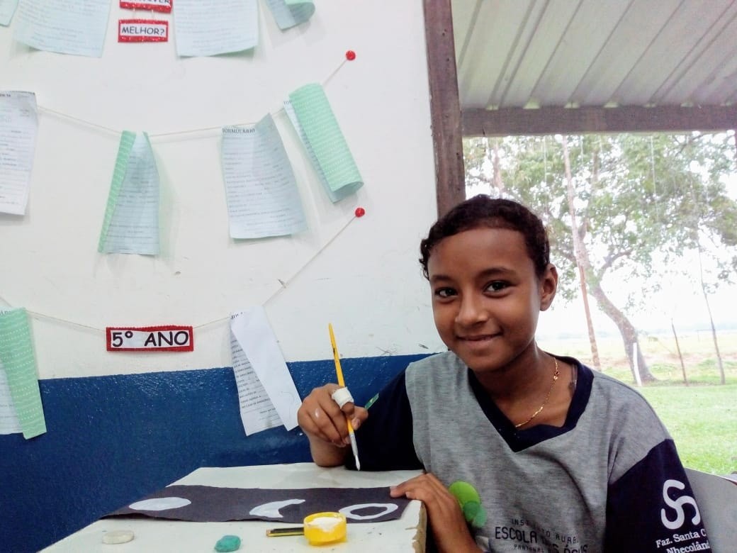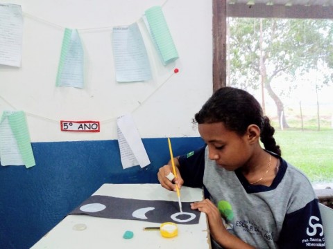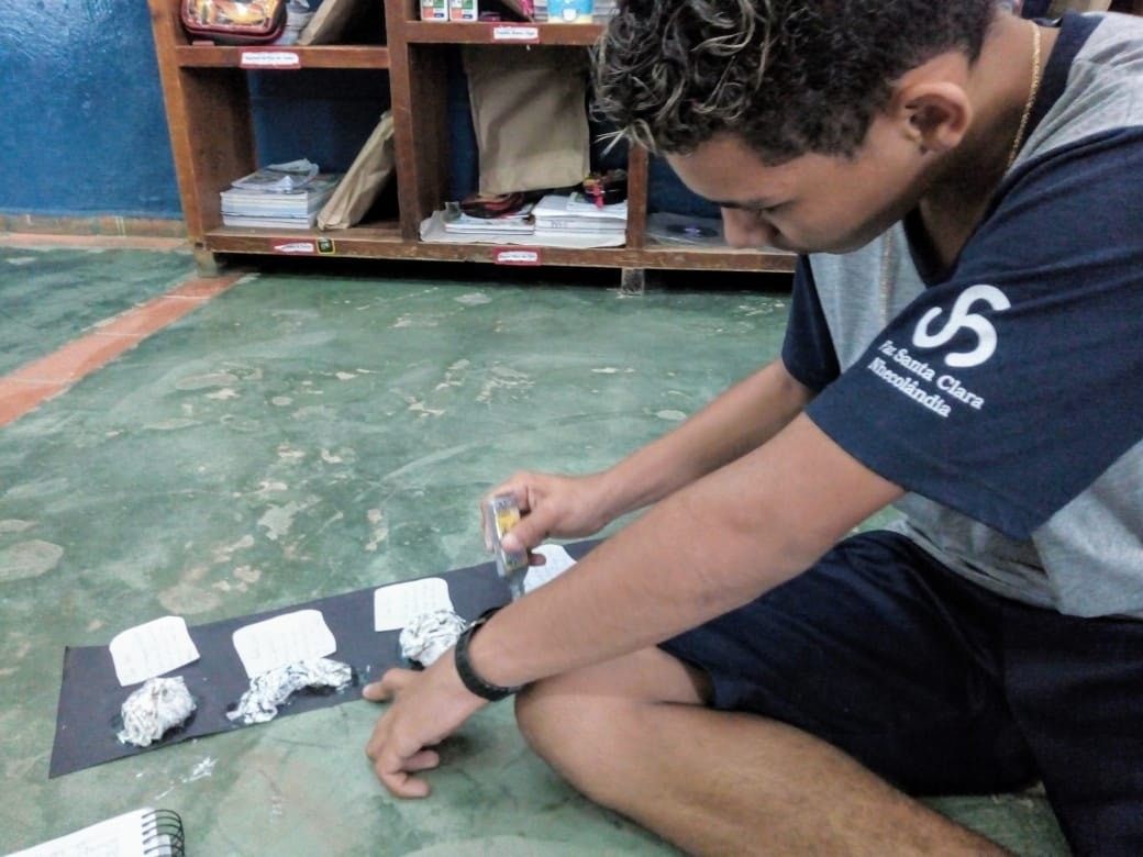 Durante a aula de Ciências, os estudantes do 5° Ano realizaram seus trabalhos sobre a Lua. A primeira etapa foi a montagem de cada uma das fases do satélite natural; em seguida, foi realizada a caracterização das mesmas. Com a mediação da Professora Anna Beatriz, os educandos puderam escolher o material utilizado (tinta guache, jornais, revistas, algodão, barbante, esponja). A atividade teve como objetivo relacionar o conteúdo teórico à esquematização.