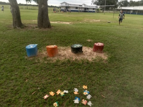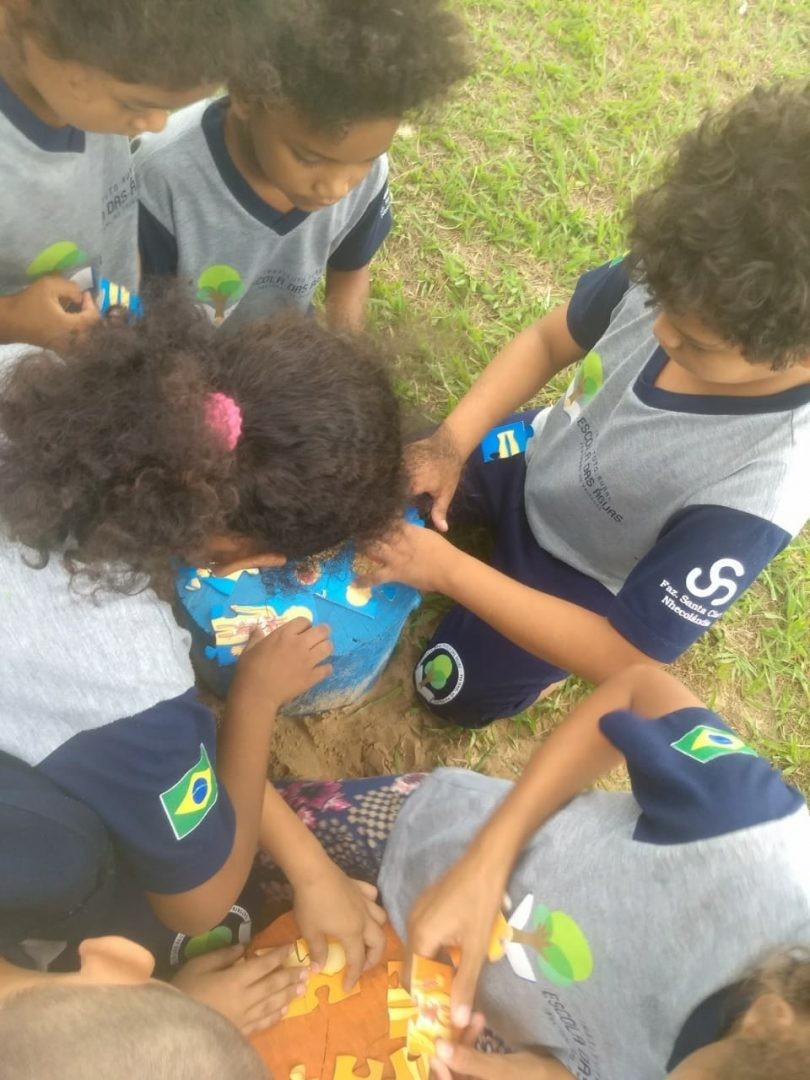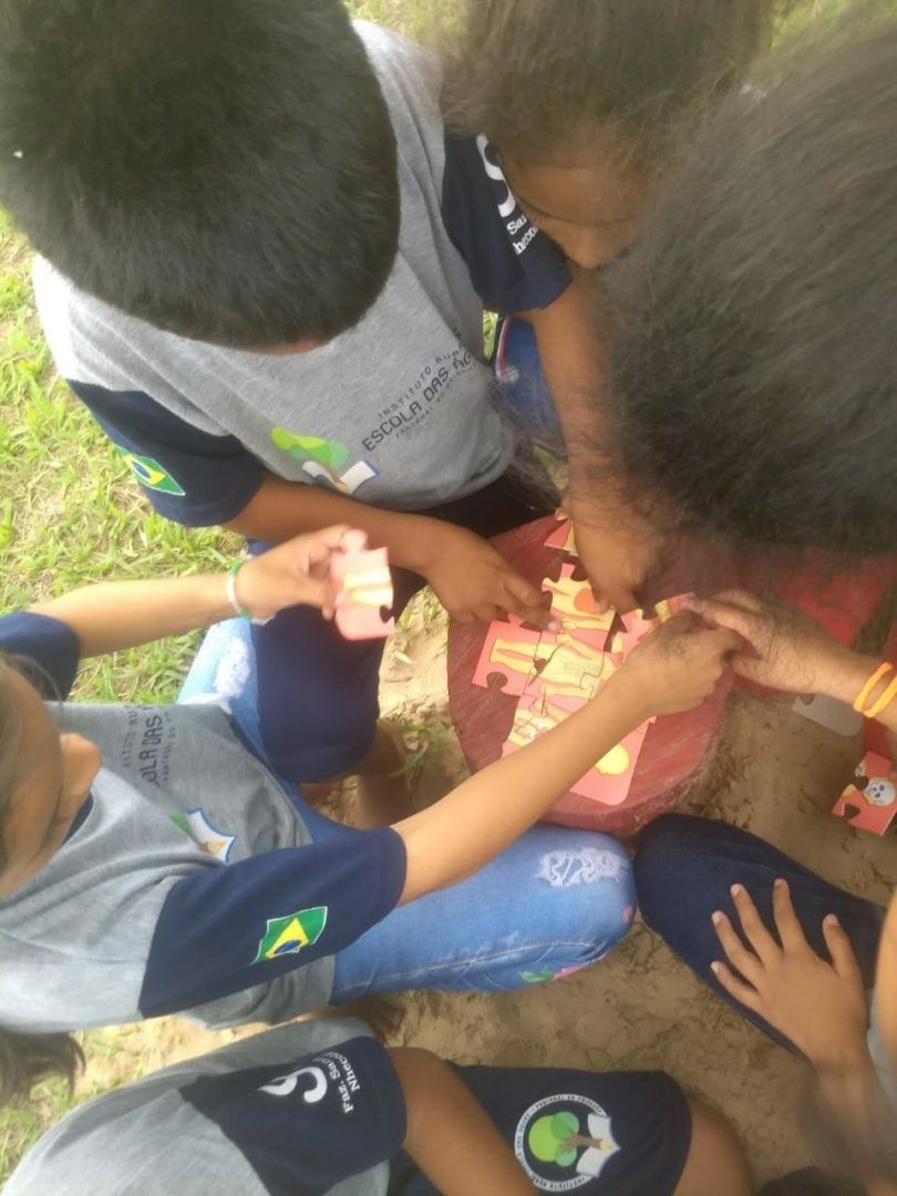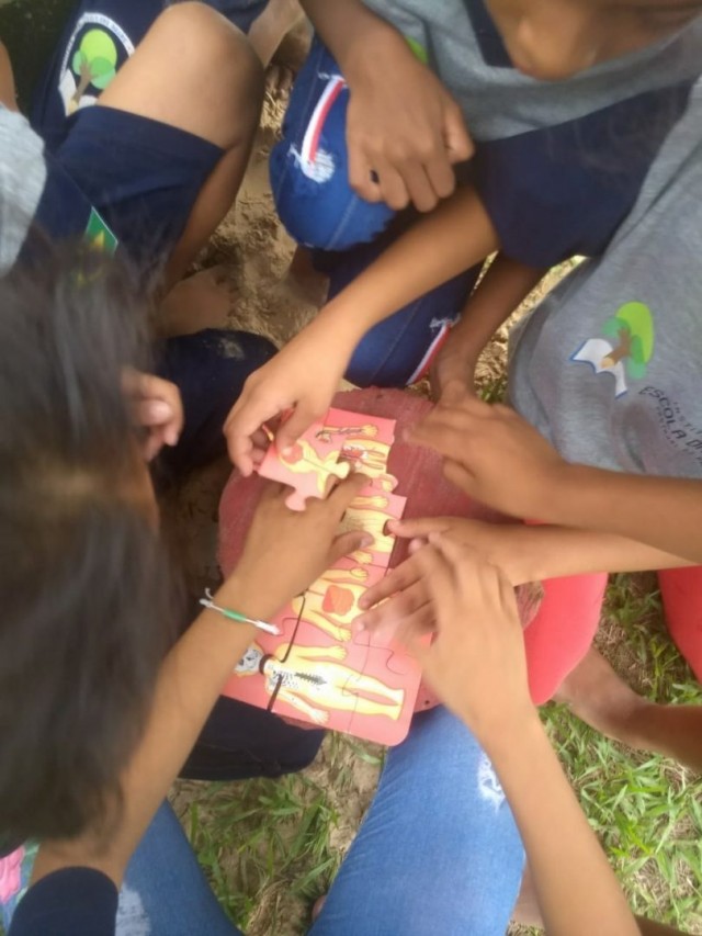 Durante a aula de Educação Física, ministrada pela professora Gicelha Ferreira, os estudantes das turmas do 1° e 2° Ano realizaram circuito para conseguir montar, em equipe, o quebra-cabeça do corpo humano.
