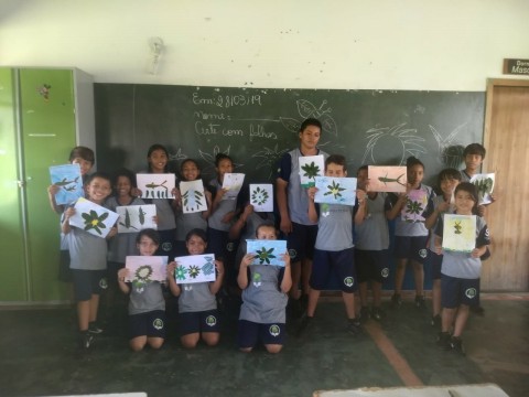 Na aula de arte, os alunos exploraram a natureza para desenvolver expressões artísticas ,com muita imaginação e criatividade.