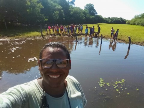 Os estudantes, acompanhados dos monitores e educadoras, saíram a campo para caminhada na manhã de Domingo.