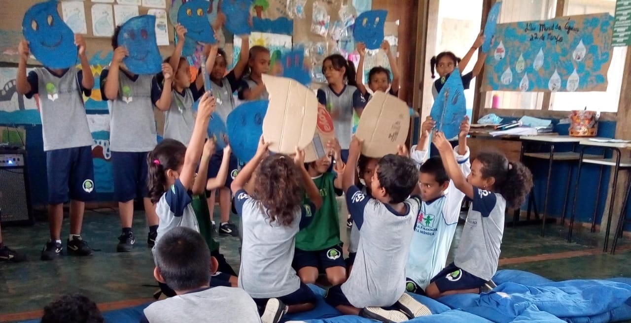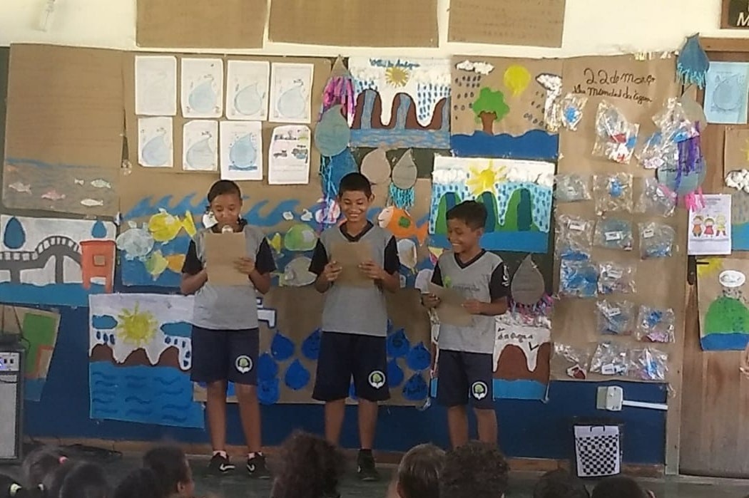 Para alertar sobre os cuidados com o recurso mais abundante do planeta, os estudantes recitaram poemas, leram informativos, apresentam peças, cantaram, dançaram.. tudo para que compreendam que, mesmo nos pequenos atos, em casa e no ambiente escolar, podem ser peças fundamentais nesse processo.