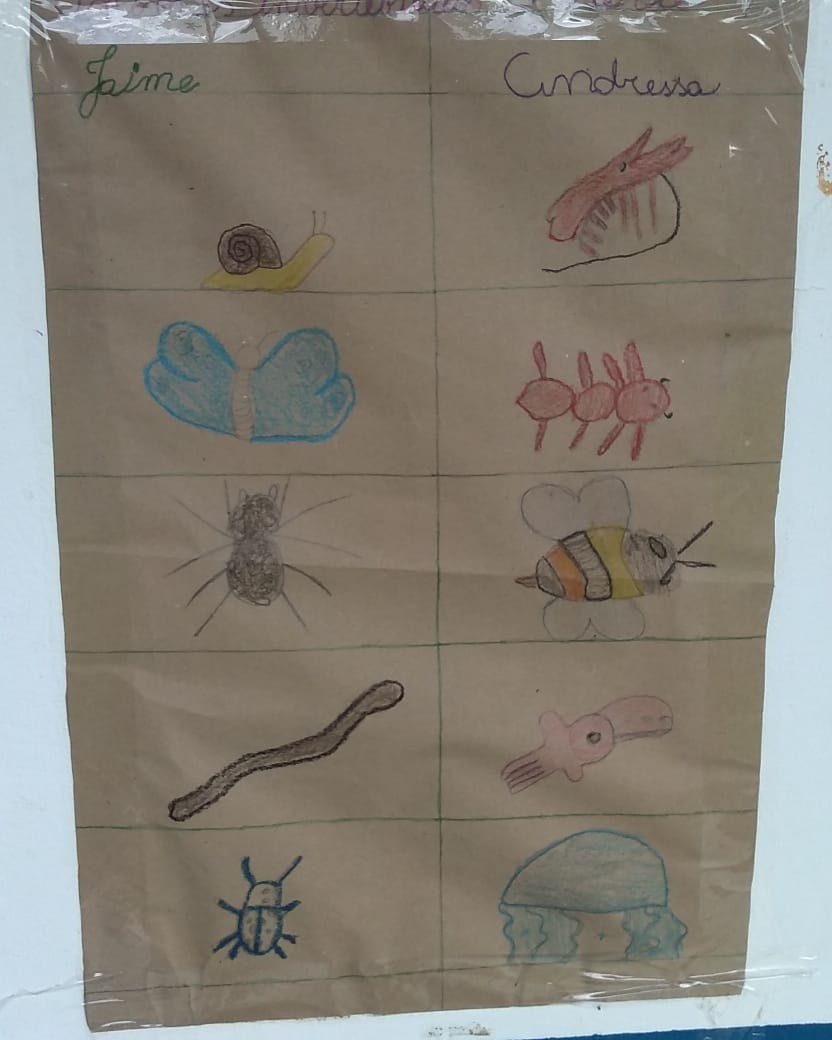 Na aula de Ciências as turmas do 3° e 4° confeccionaram cartazes sobre os animais invertebrados e vertebrados e animais em extinção, respectivamente. Com a mediação da Professora Nádia Karine, os estudantes foram orientados a realizar os desenhos, distribuindo-os de maneira organizada no papel, trabalhando assim, a coordenação motora, organização e trabalho em equipe.