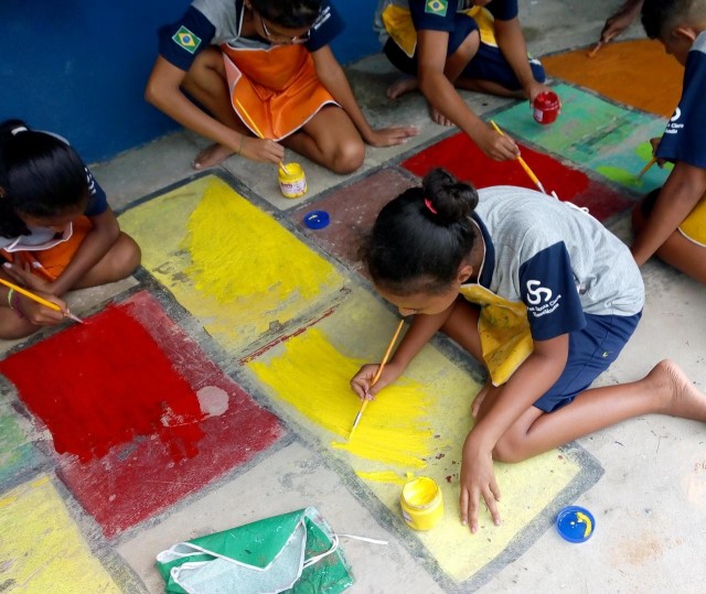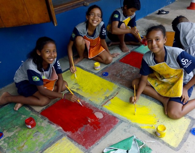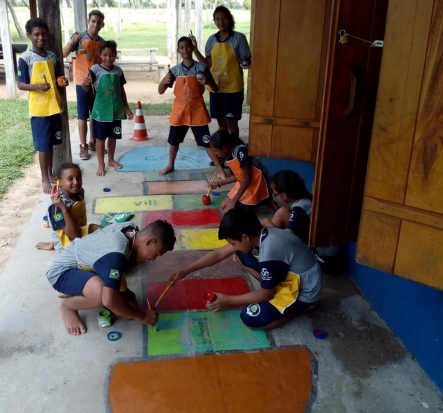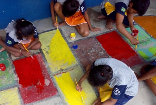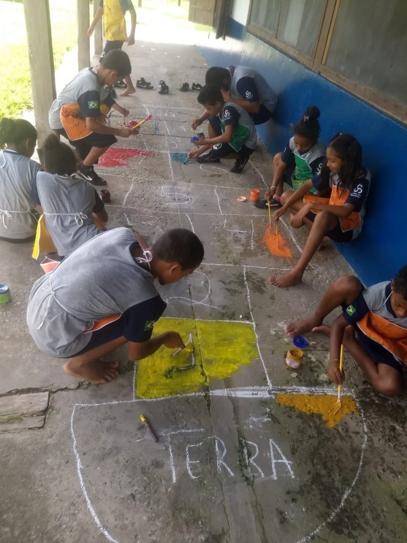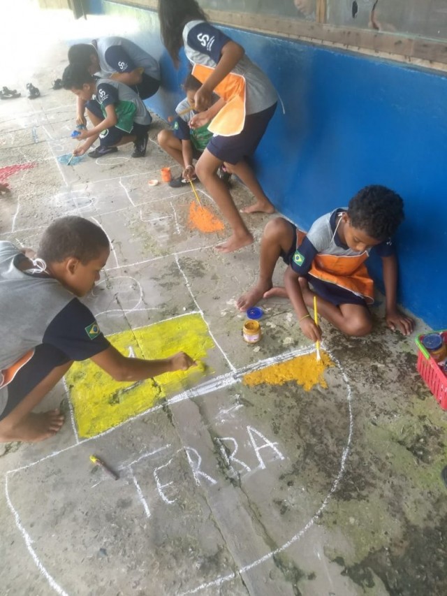 Na aula de Arte, os estudantes do 3°, 4° e 5° anos pintaram a amarelinha! A atividade, mediada pela educadora Gicelha Ferreira, teve por objetivo estimular a expressão artística por meio das cores e formas, criatividade, trabalho em grupo, além de proporcionar maior qualidade de vida ao ambiente escolar, trazendo para o cotidiano mais uma brincadeira, podendo ser utilizada por todos e em diversos momentos, como os intervalos, gincanas, finais de semana e aulas de Educação Física.
