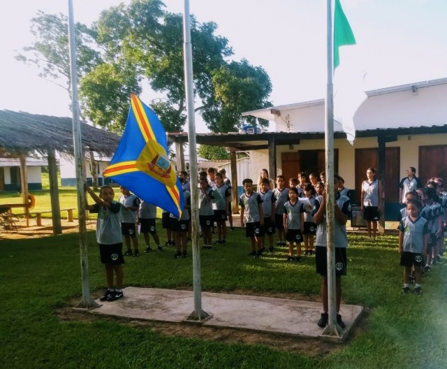 Todas as manhãs de sexta-feira temos o nosso Momento Cívico no qual executamos os hinos do Brasil, de Mato Grosso do Sul e de Corumbá.