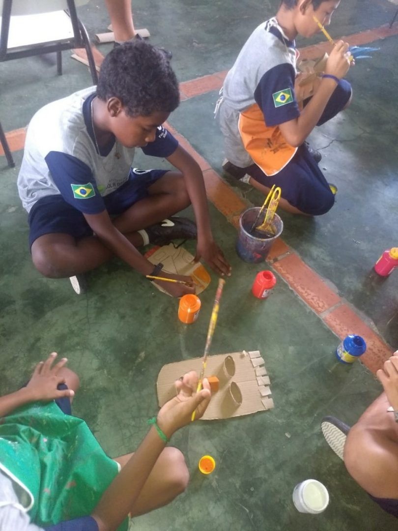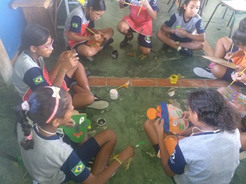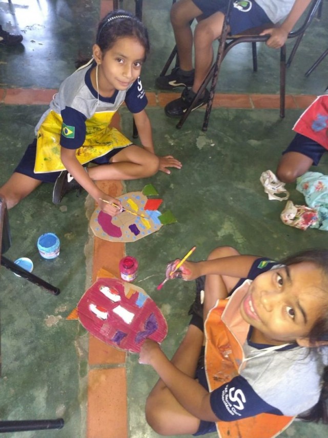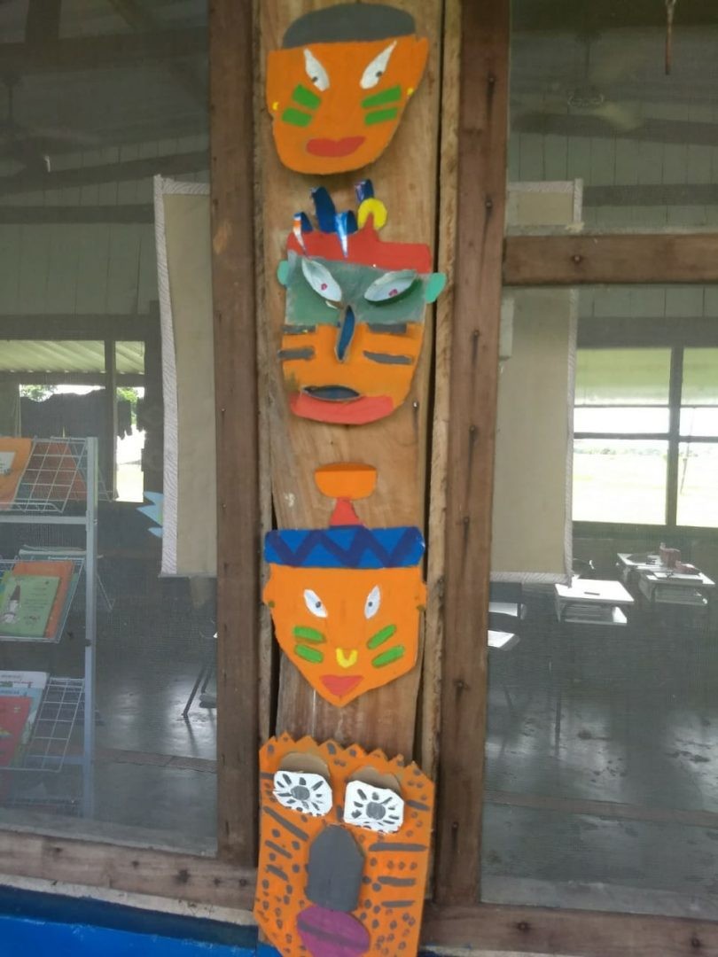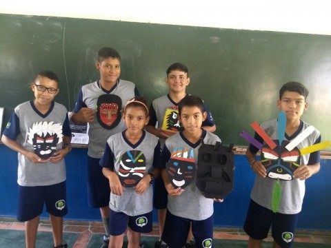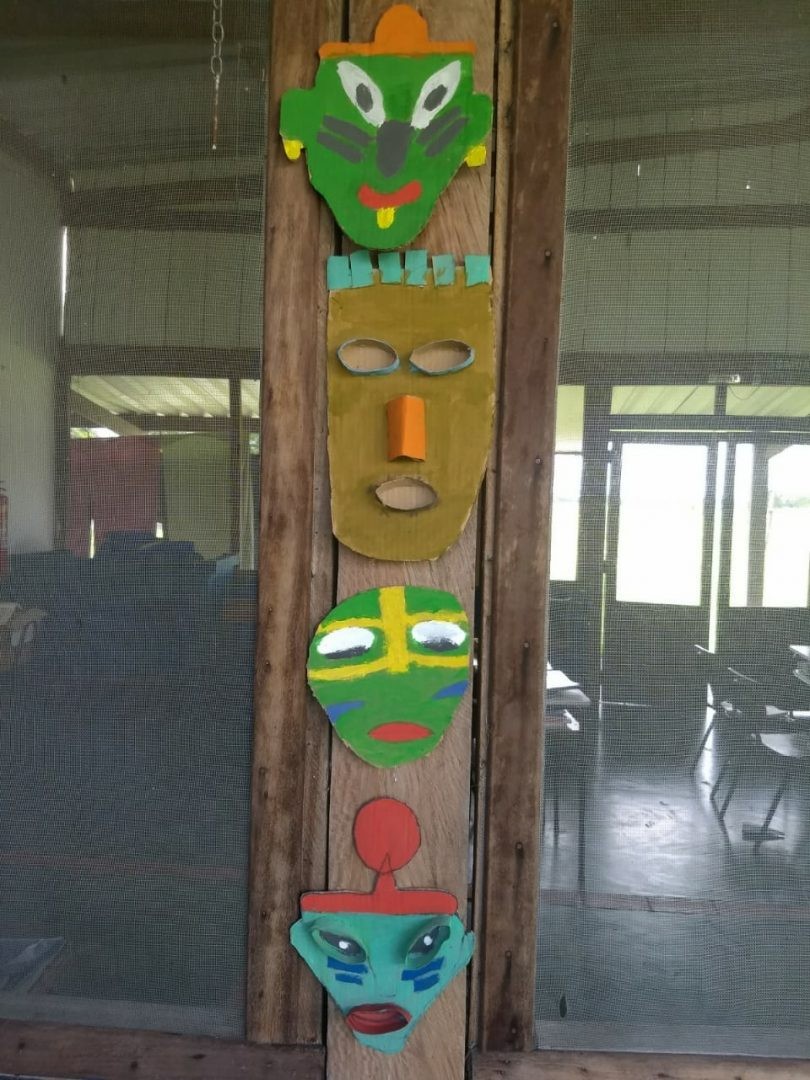 Na aula de Arte, confecções de máscaras africanas ,para os alunos compreender um pouco mais sobre as belíssimas histórias ancestrais da mãe África.