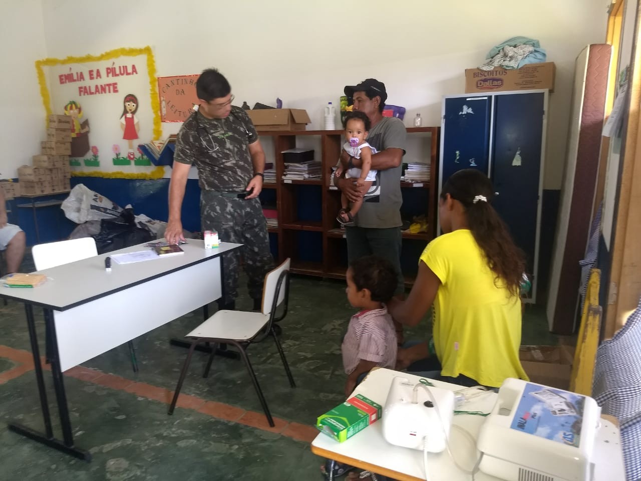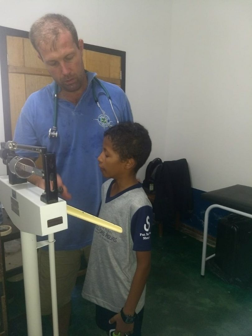 O atendimento médico é para os alunos e funcionários de fazendas próximas a escola. São realizadas também palestras e gincanas com a criançada.
