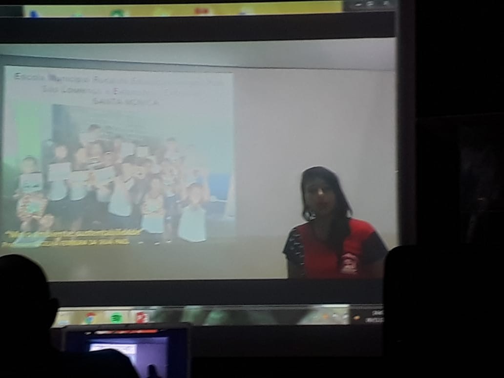 Representando a Escola Municipal Rural de Educação Integral Polo São Lourenço e Extensões. Extensão Instituto Rural Escola Das Águas, as professoras Laura Monteiro, Silvana Souza, Gicelha Paes, Mônica Kaled, defesa do projeto Professor Por Excelência 2018.