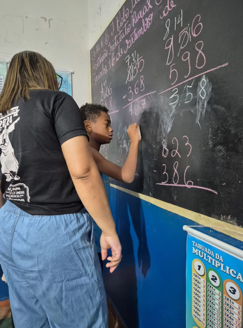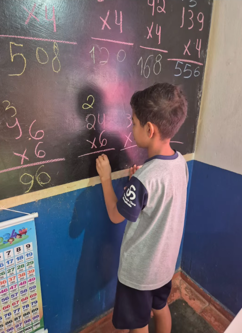 Nesta aula de Matemática com a professora Evelyn Cristina , os alunos colocaram em prática os conhecimentos sobre multiplicação na ordem da unidade, resolvendo exercícios de forma dinâmica e colaborativa.