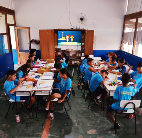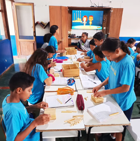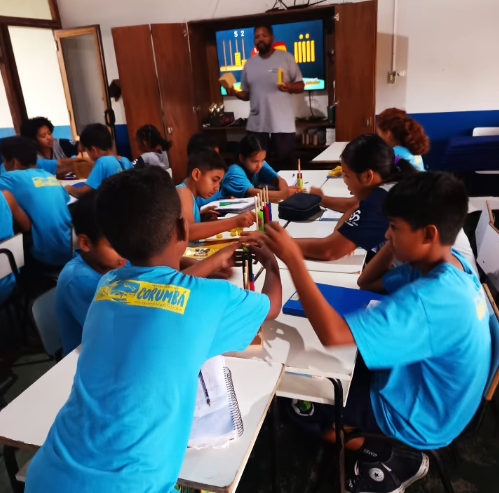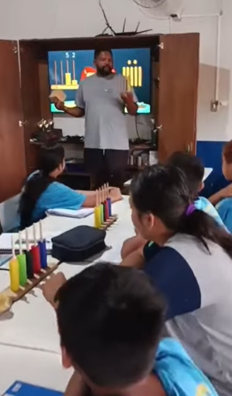 As turmas do 4º e 5º ano participaram de uma aula prática e interativa com o professor Wanderley Catarino utilizando o ábaco e o material dourado, recursos pedagógicos que ajudam a compreender melhor o sistema de numeração decimal, operações matemáticas e o valor posicional dos números.