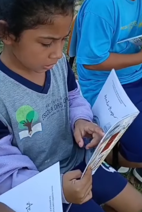 A professora Rosiene Vilalba propôs na turma segundo ano de uma roda de leitura compartilhada, com o intuito de desenvolver as habilidades de leitura em voz alta, promover a discussão do texto e estimular os alunos a fazerem previsões sobre a história.