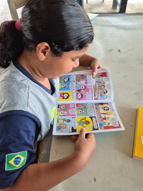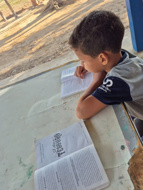 Na turma do terceiro ano, a professora Everlyn Cristina propõe o momento de leitura individual com o objetivo de promover a autonomia dos alunos. Essa prática contribui para o desenvolvimento da concentração, enriquecimento do vocabulário, aprimoramento da compreensão de textos e estimula o prazer pela leitura.