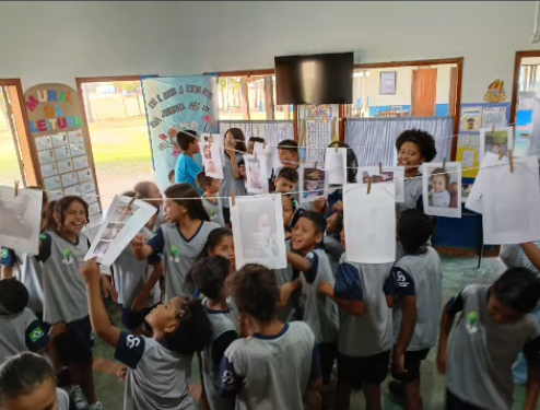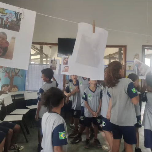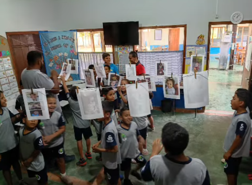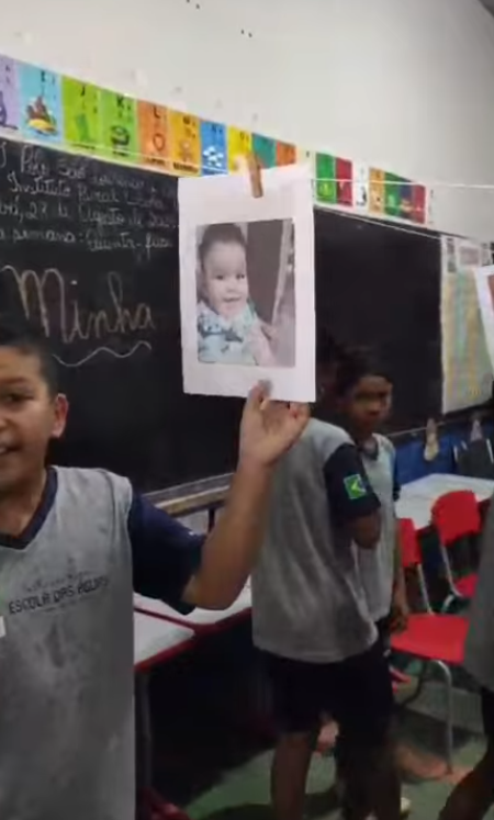 A professora Rosiene Vilalba inovou ao criar um varal de fotos dos alunos quando bebês na sala de aula, com o objetivo de identificar mudanças e permanências ao longo da vida. As crianças descreveram como eram, o que faziam e o que mudou, fazendo diversas comparações e compartilhando com as outras turmas. Foi um momento de aprendizagem emocionante e significativo.