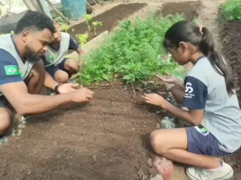 Os alunos do 3º ano participaram de uma aula especial de Horta com o professor Juliano Gonçalves de Souza, na atividade aprenderam a construir canteiros, semear e cuidar da horta com foco na produção orgânica. A atividade estimulou a responsabilidade, a paciência e a conexão com a natureza.