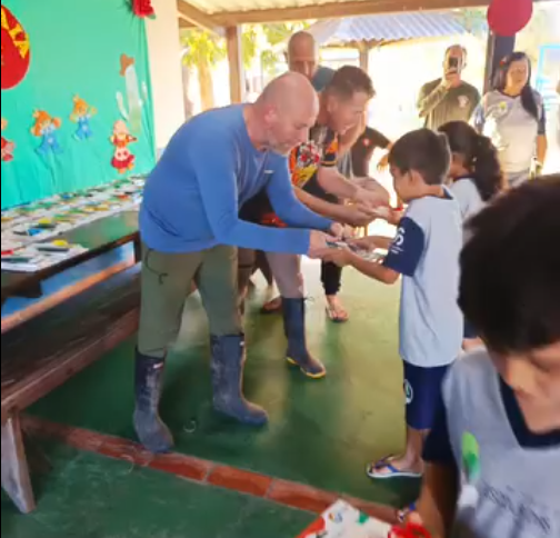 Neste sábado, tivemos o prazer de receber em nossa Escola um grupo de empresários argentinos liderados por Marcos Rogério Gadernal e Eduardo Valensia , membros da Expedição Alma Pantaneira. Os aventureiros Gonzalo Hernan , Patrício Fabían, Leandro Ariel e Rolando Cur estão atualmente explorando as belezas naturais do Pantanal. Além de compartilharem conosco suas experiências, eles generosamente nos presentearam com doações de materiais escolares. Expressamos nossa imensa gratidão aos visitantes.