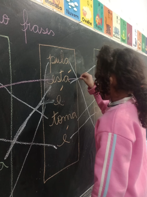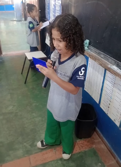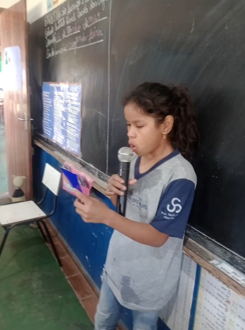 A professora Rosiene Vilalba Rólquis realizou a dinâmica "Formando Frases" com a turma do 2° ano, em que cada aluno teve a chance de usar o microfone para aprimorar suas habilidades de comunicação e conhecimento em leitura e escrita. Foi uma forma divertida e interativa de aprender!