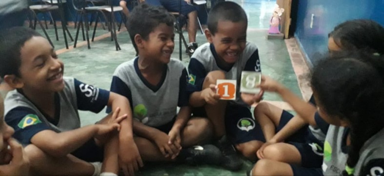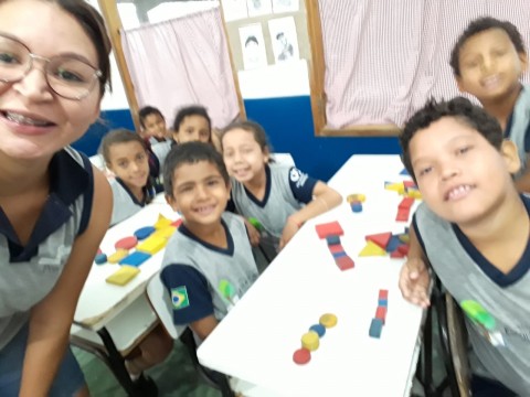 A turma do 1° ano conhecendo as a pronúncia e escrita das cores em inglês.