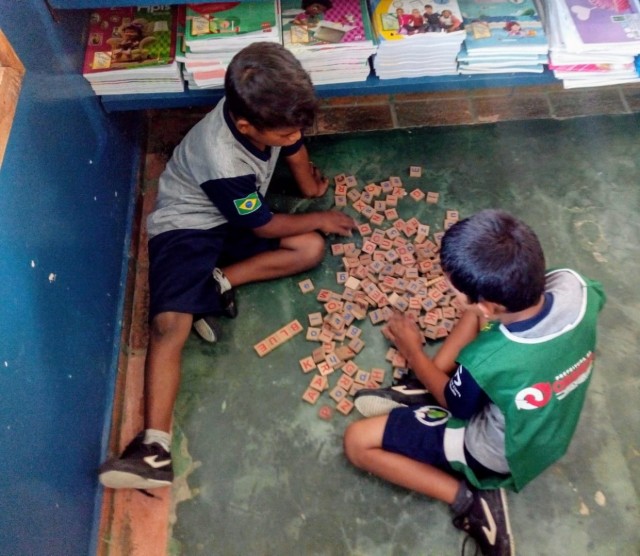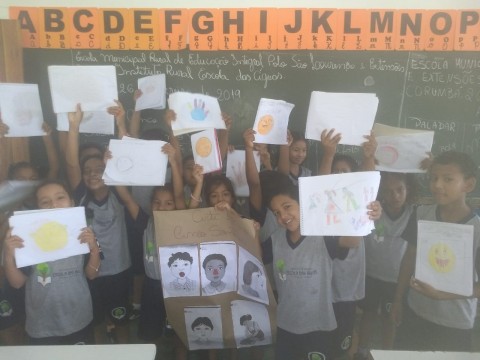 Aula de Arte, os estudantes do 3°, 4° e 5° anos.