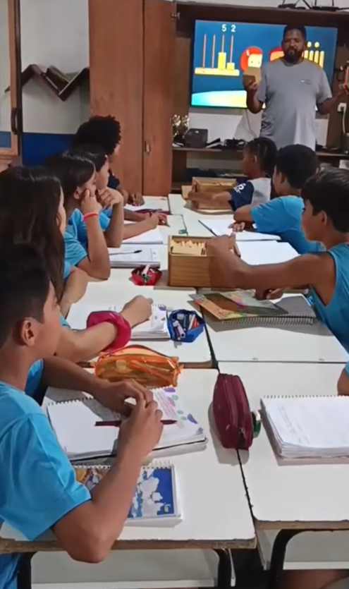 As turmas do 4º e 5º ano participaram de uma aula prática e interativa utilizando o ábaco e o material dourado.