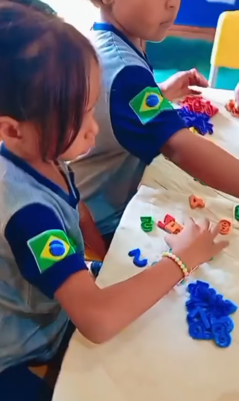 A professora Jacqueline Lima Monteiro apresentou a proposta de trabalhar com material concreto para a turma do 1° ano